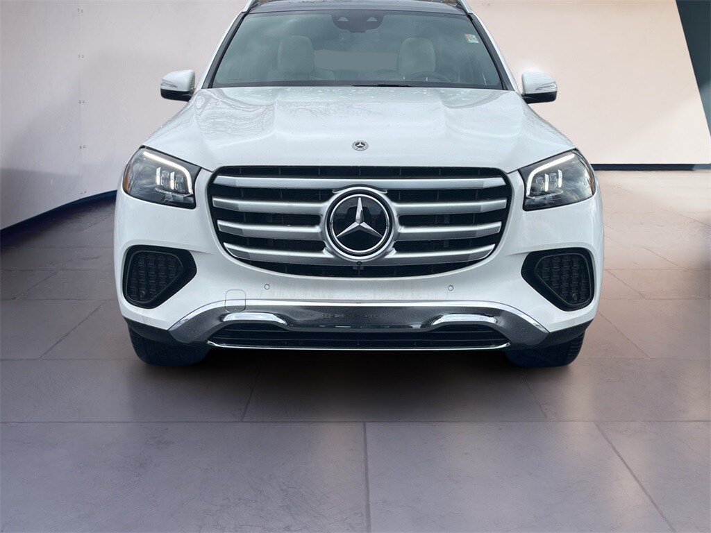 Polar White 2025 Mercedes-Benz GLS GLS 450 4MATIC® 4MATIC® 9-Speed Automatic 3.0L I6 Current Executive Loaner Car, GLS 450 4MATIC®, 4D Sport Utility, 3.0L I6, 9-Speed Automatic, 4MATIC®, Polar White, Beige/Black Leatherette.